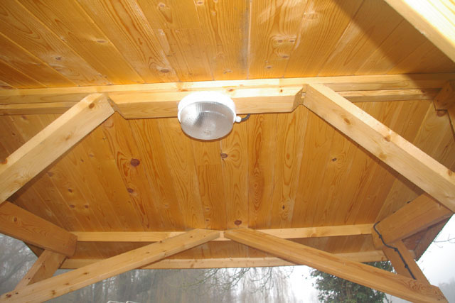 Op de stekken staan picknick banken met electra en een afdak. Hierin is elektra geïntegreerd.